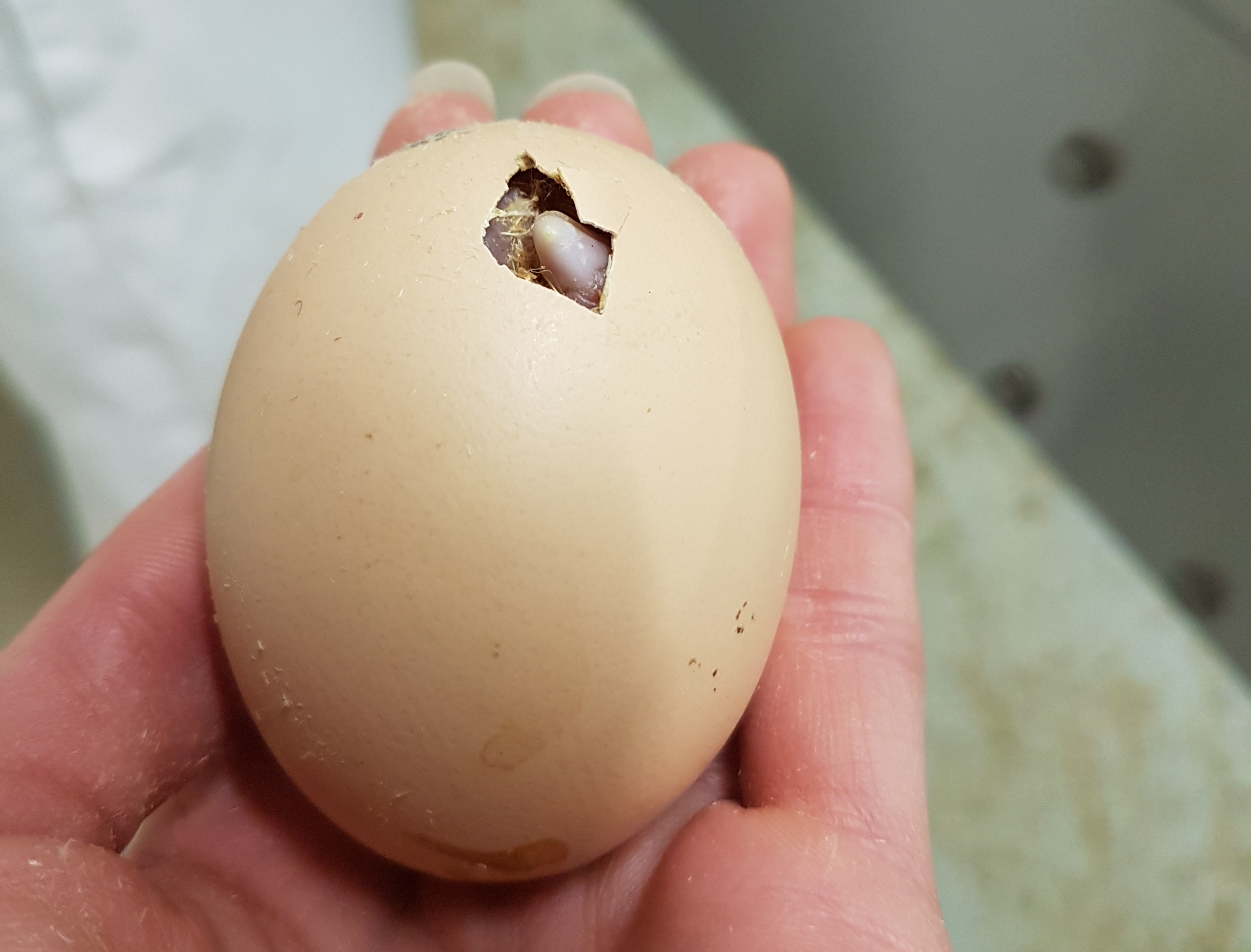 For optimal hatch results and chick quality, eggs need to lose sufficient weight during incubation. The aim should be 11–12% egg weight loss at transfer (18 days) compared to the original fresh egg weight. This weight loss is due to water evaporating from the eggs through the pores in the eggshell, causing the air cell size to gradually increase. The air cell should be sufficiently large to allow the fully developed ready-to-hatch embryo to internally pip (pierce its beak into the air cell). This allows the embryo to inflate its lungs to initiate lung respiration and gradually become independent of gas exchange through the chorioallantoic membrane (CAM).
